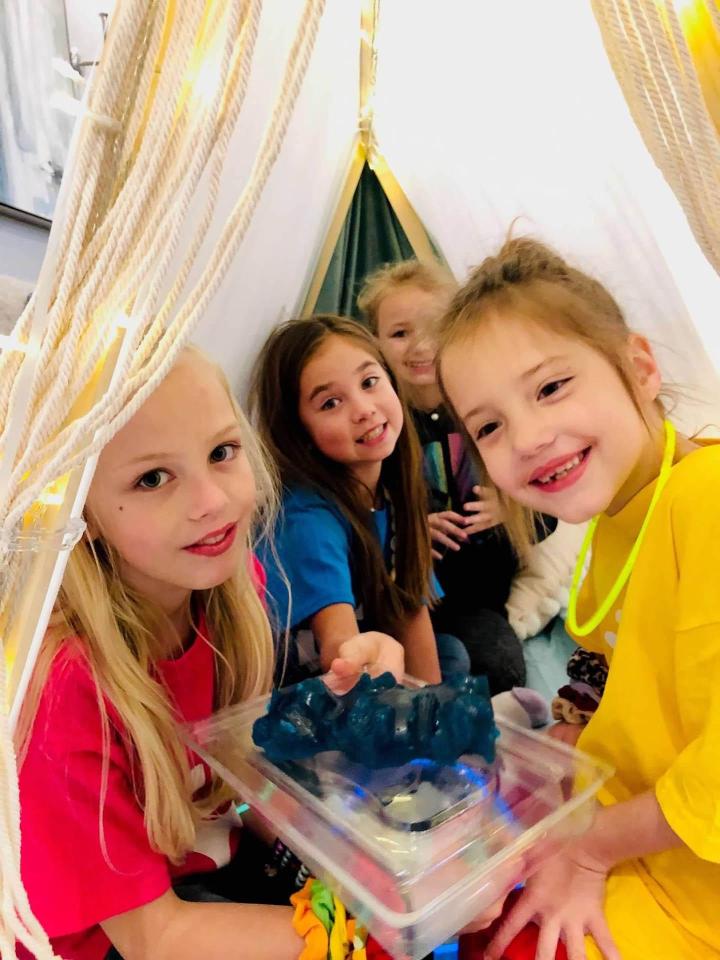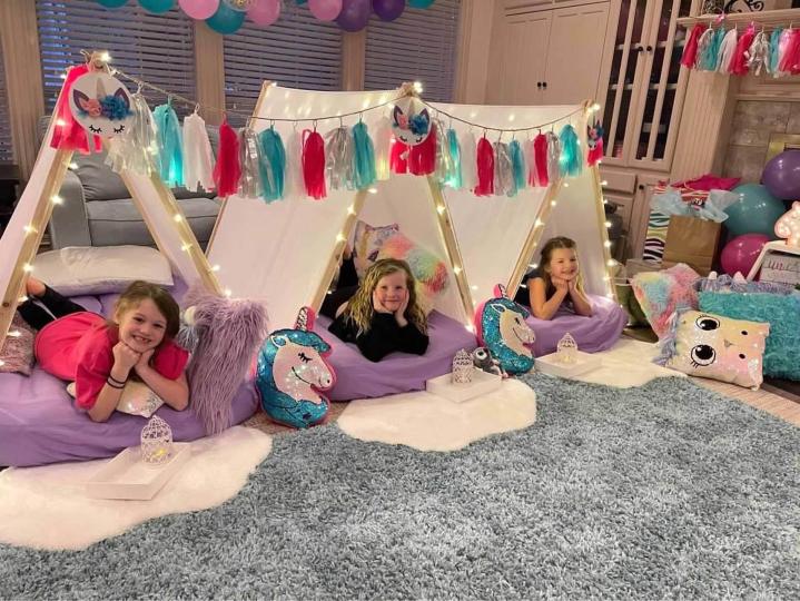 The custom Big Tent comes with memory foam mattresses, plush blankets, chandelier, vibrant decor, and beautiful stung lights to enhance the party atmosphere. Our attention to detail ensures that every child is engaged and entertained, making your child's party a truly unforgettable adventure.